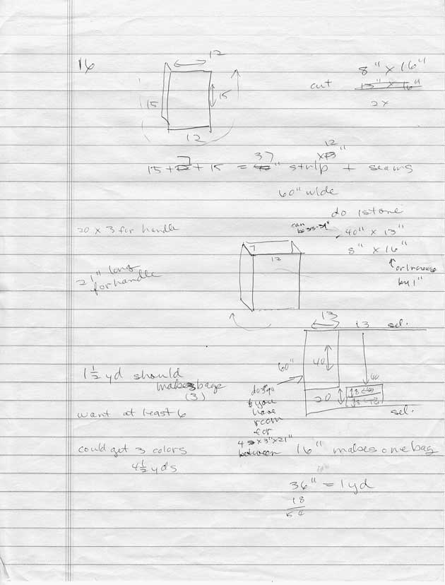 (here is a scan of my very old original sketch of designing the bags)